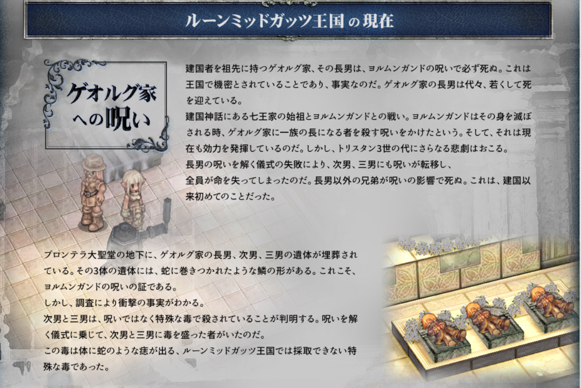 ゲオルグ家って呪いのせいなのか子だくさんだね。トリスタン3世は妹が3人いるし、呪いで死んだ兄がおそらくいる。