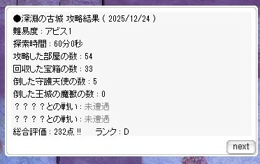 ファンシーはあとでやることにしてアビス1古城殴りCDソロ!教会地区制覇を目指して東→水門にできるだけ直行→リログして教会地区へというルート取りをしてみたけど渓谷が硬すぎて1部屋3~4分かかるから無理だった😂 (リログして戻った時点で残り14分…)教会制覇は諦めて次回は物理向けルートを挑戦してみましょう