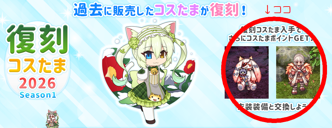 @tunasand 復刻コスたまは基本的に毎回ココに表示されてる衣装が40 or 80ポイント交換の新作になってるのでココをチェックするといいかもです