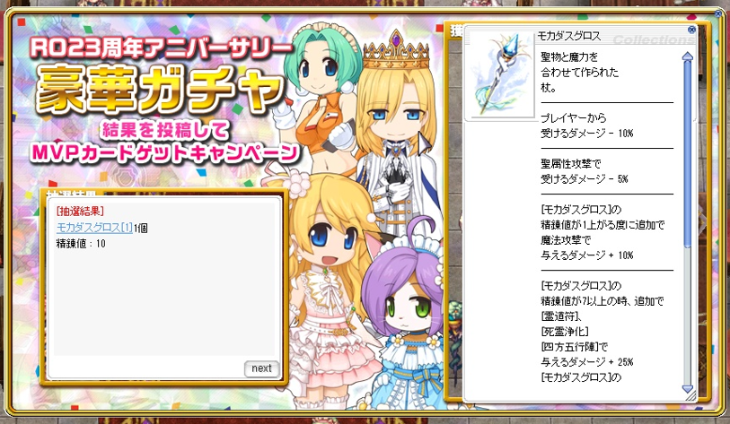 性能的には+8程度の超越グレイシア相当の火力が出て、+9以上のHPリジェネ効果が目玉だと思います。