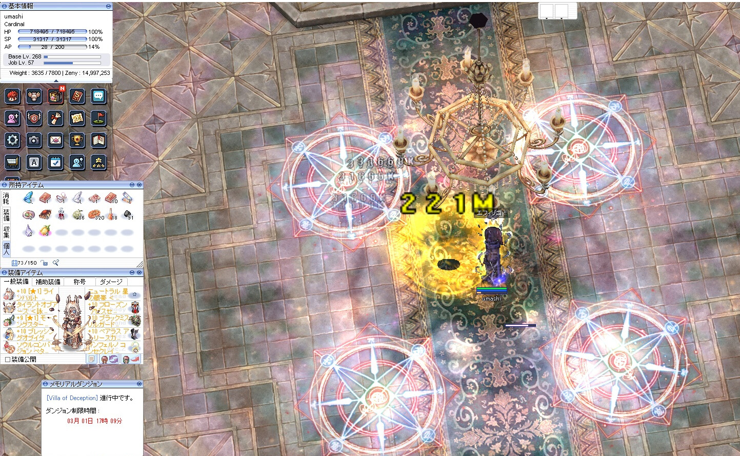 Lv275の殴りCDメイン。他にも265SA、260殴りCD、221魔葱、202殴りCD、225退魔CD、ロボメカ、3次魔猫、ジェネ×2、B鯖に202NWと育成中修羅と260殴りCD。いろんな職やりたいマン。2024年12月に10数年ぶりに復帰しました。ドカタ好き。H鯖にて毎週土曜日23時~ファロス臨時開催!