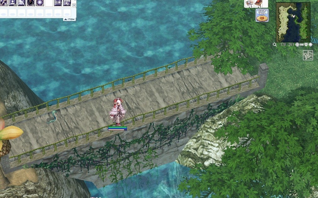 よく見る橋って木の吊り橋だから、基礎が川の中に埋め込まれてる橋はRO内で初めて見た気がする。