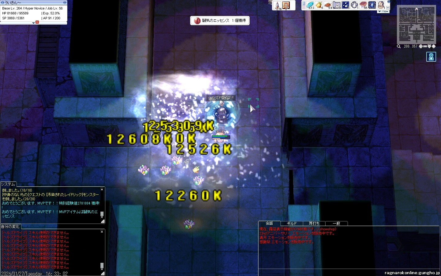 デミフレイヤのテトラぐらいなら、エナジーコートあり、ボス耐性70%、無耐性55%、念鎧で、ノビの250kのHPが6~7割減る程度だから即死はしないし、3%剤押しっぱで全然いける。