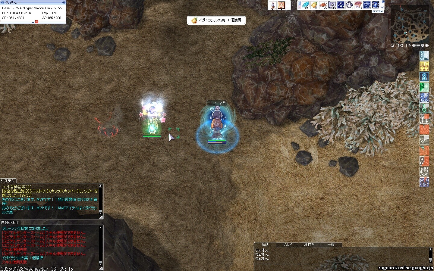 ROβ時代からやってます。V鯖の0ヒーラー、壁ノビのういさん。