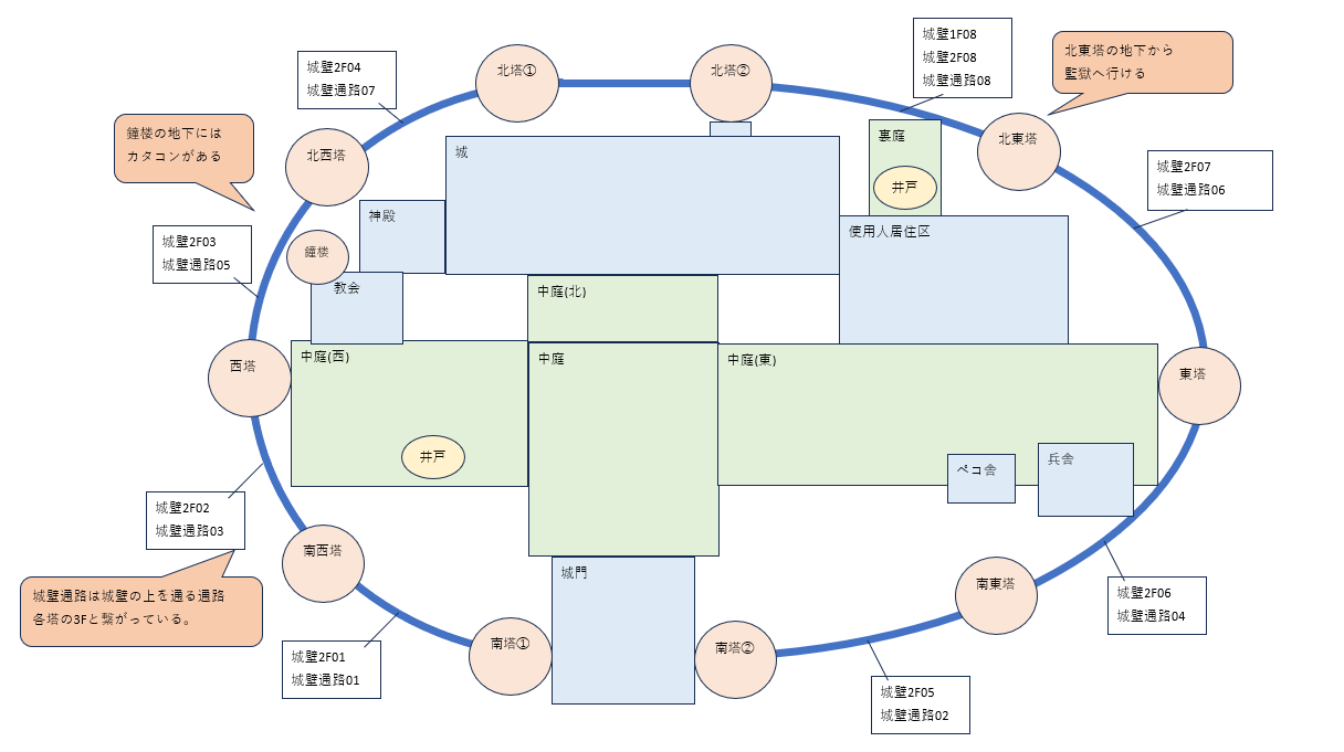 地図の形は『MD深淵の古城』と同じですが、通れる道やギミックなどが違いますので、