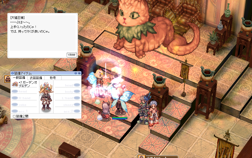 冒険の様子を記録してもらったら、「猫王様」に報告できます。