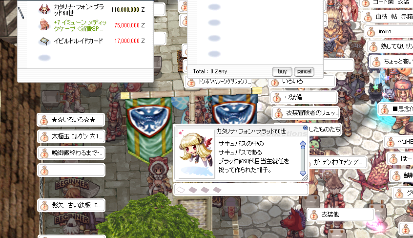 プロンテラの十字路の買い取りチャットの場所に人が集まっていますね。