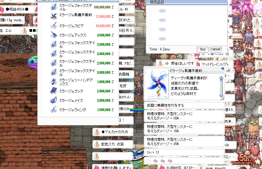 露店を眺めています。このミラージュ風魔手裏剣はちょっと欲しくなりましたが、ディーヴァ風魔手裏剣やニーヴ風魔手裏剣で似たようなエンチャントのものがあるのでパスします。