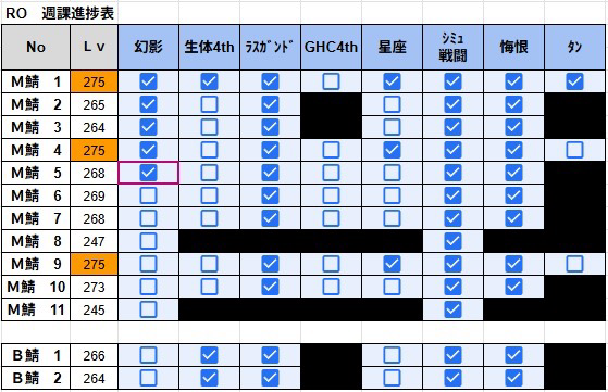今週はユンケア24周、悔恨18周、GHC4th7周、幻影12周、星座10周、といういつもの日課に加えて新たにタン1周、ラスガンド18周を追加で完了。モロクcの導入によってまた日課が増えてしまった。