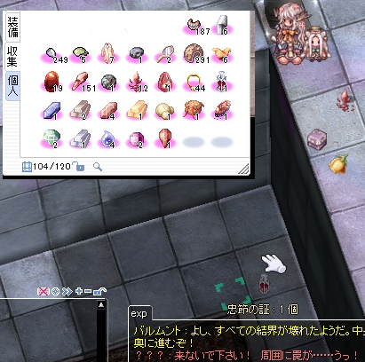 最後のガラスケースの部屋では金塊の代わりに金貨のかごがドロップ。金・銀・白金の塊は毎回固定アイテムと思っていましたが、変化するみたいですね