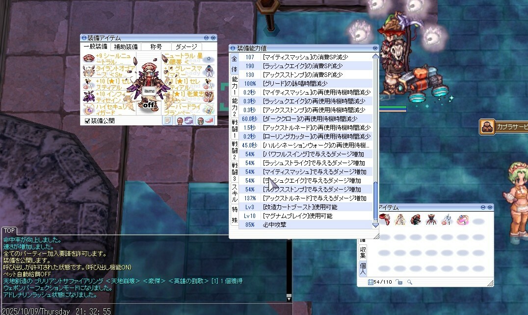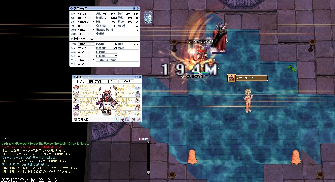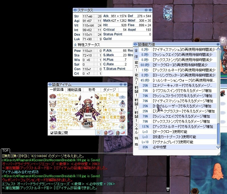 自己バフはウェポンパーフェクションとカートブーストと近接アップ叢書と手紙だけで覇王等は未発動