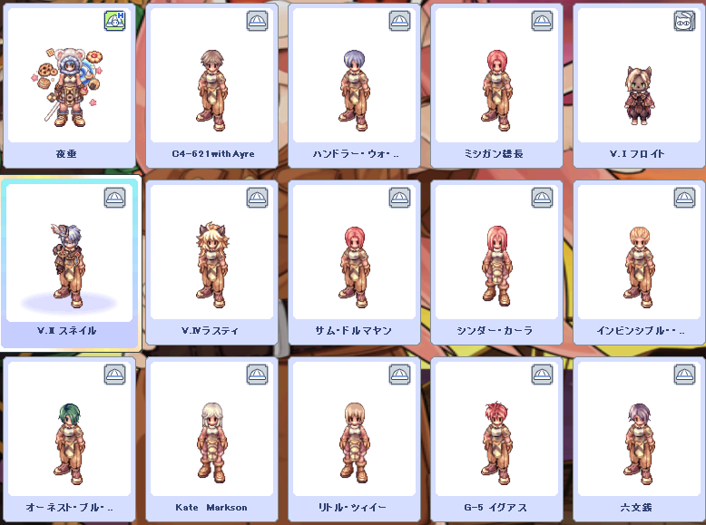 一旦こんな感じでおちついた。2段目右から2人目のGXを不知火か、ソウルリーパーにしようかなーと模索中