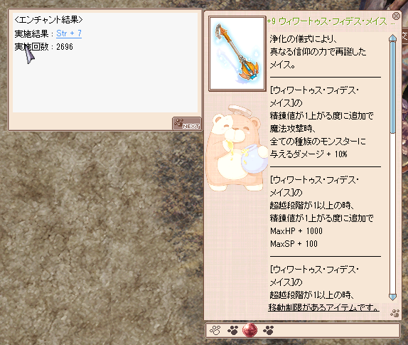 +7チケ消滅するのもったいないから、アメかけ3000個とか買ってきて叩いてたけど、+9メイスできちゃった