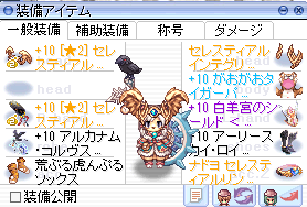 ほぼ資産ないとこからだったので、WebMoney期間中にセレスティアル10+6パッケと職業SP4パッケをカンカン頭がめっちゃ沼ったけど、よくよく考えたら先に鎧か靴の超越すべきだった感…念鎧と聖肩だけ9、毒聖鎧と念毒闇肩は7まで上げて、行けるMDがだいぶ広がった最初は粉不足で属性変更すらままならなかったので、粉を稼いだらアクセに穴開けたい