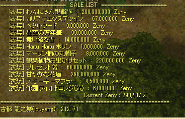 とりあえず衣装処分と、使わなくなった装備をN鯖で売りに出してます!