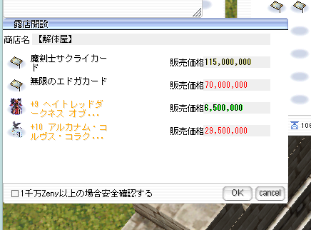 RO休止N鯖出品:デミフレイヤ 110m無限エドガ 75m