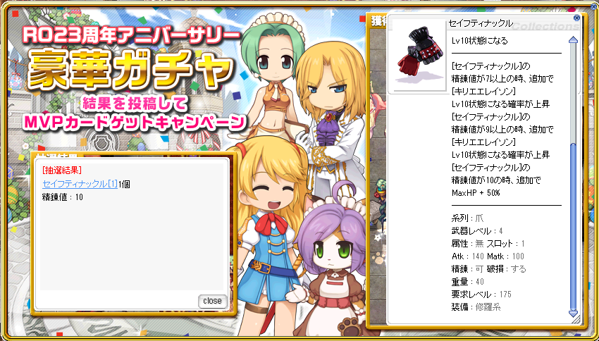 明日から福引始まるけど、新武器用で10確定チケットのために回す人どのくらいいるんだろ。現金使わずに完成させるならここだと思うけど。
