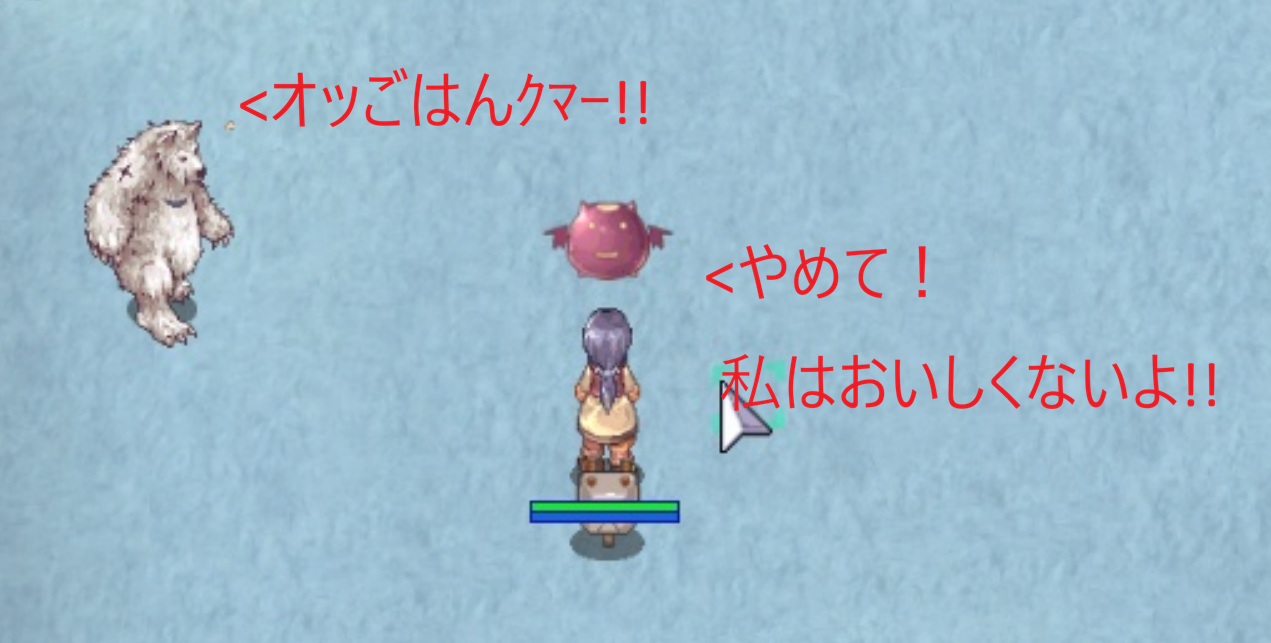 スクショではクマ1体ですが実際には5体に追われていて、ちんたらカートでWPまでデッドヒートでした(死が見える