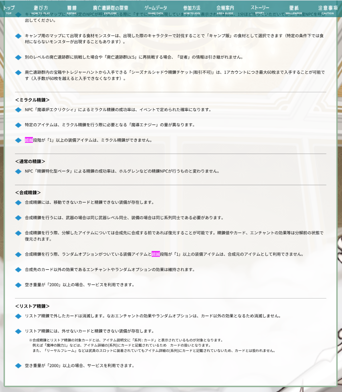 ◆合成精錬を行う際、ランダムオプションがついている装備アイテムと超越段階が「1」以上の装備アイテムは、合成元のアイテムとして利用できません。