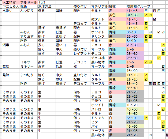 先駆者のレシピだと特定の精霊だと出ていないものがあったりするので注意。ある程度日付の余裕が欲しいっていうのはこれのせい。