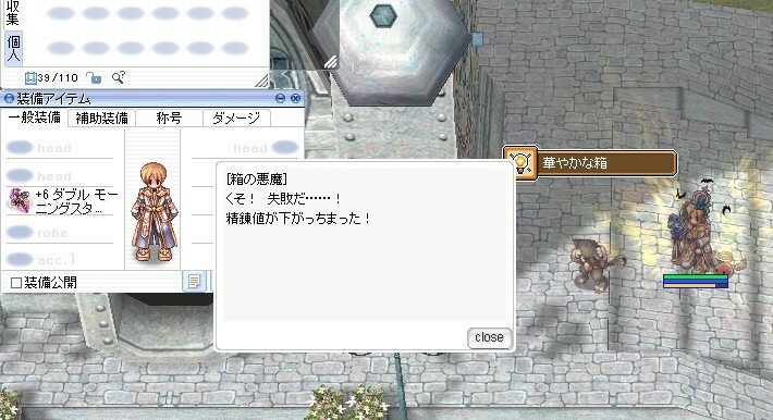 H鯖でLv275の殴りCDメイン。他に275SA、265殴りCD、240魔葱、215殴りCD、225退魔CD、ロボメカ、3次魔猫、ジェネ×2、B鯖に219NWと200インクと267殴りCD。いろんな職やりたいマン。2024年12月に10数年ぶりに復帰しました。ドカタ好き。H鯖にて毎週土曜日23時~ファロス臨時開催!